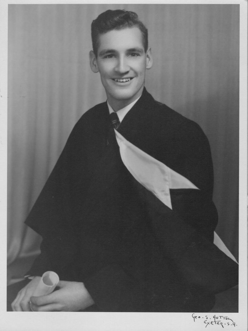 Fourth son of Clifford Arthur Abbott, born in Adelaide in 1930. He commenced tertiary education at the University of Adelaide and SA School of Mines and Industries in 1948 and took vacation employment whenever available. He graduated B.Sc. from the University of Adelaide in 1952. In 1950 he joined Cresco Fertilizers Ltd. at its Birkenhead SA laboratory and there in addition to routine quality control duties he was involved in the elucidation of the auto-oxidation of Nairn SA iron pyrites concentrate.